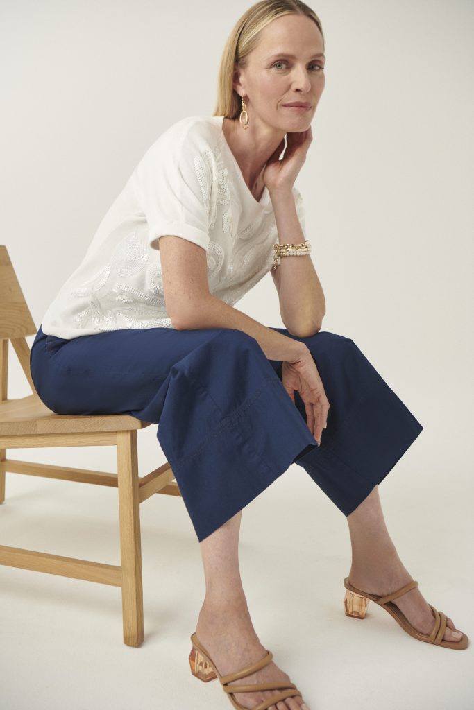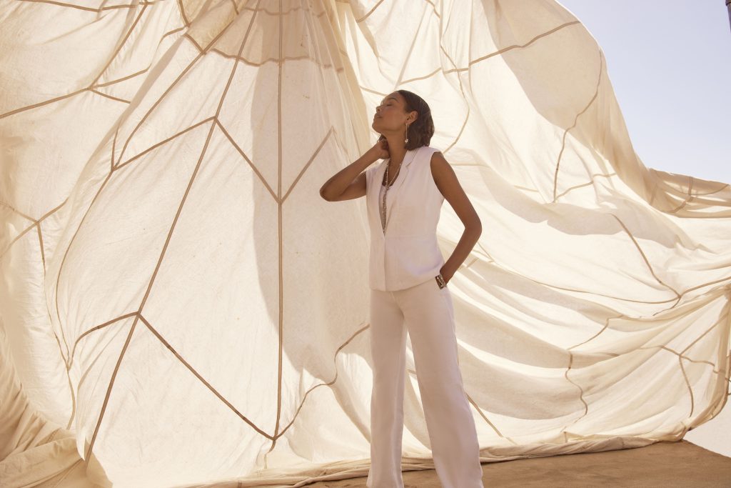 Esta nueva colección incluye prendas que son ideales para viajar o simplemente para sentirte bien contigo misma durante las tardes cálidas. En los looks se muestran outfits con un tono más despreocupado y casual sin dejar atrás el lado chic en cada look; destacando el amarillo como el color ideal para esta transición de estación llena de vitalidad y alegría. Las prendas están diseñadas para cualquier edad, ofreciendo opciones como blusas blancas y pantalones blancos para un look minimalista pero adecuado para el clima actual. Las blusas blancas con detalles de flores bordadas son un must infalible que puedes combinar con pantalones de vestir acampanados, logrando una vibra playera pero siempre elegante.