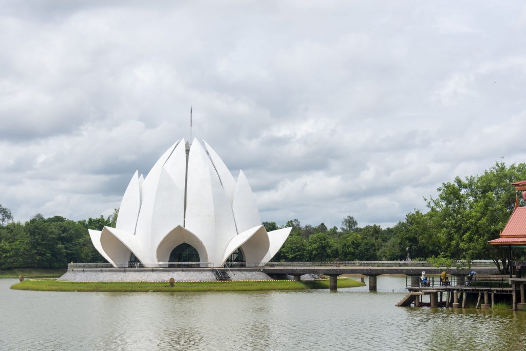 Considerada una de las estructuras más hermosas de la arquitectura moderna, esta impresionante casa de oración bahá’í parece flotar sobre un estanque como una flor de loto gigante. Sus pétalos de mármol blanco se elevan hacia el cielo, creando un espectáculo hipnotizante, especialmente cuando se ilumina por la noche. El templo es un símbolo de la unidad de la humanidad y la armonía entre las religiones.