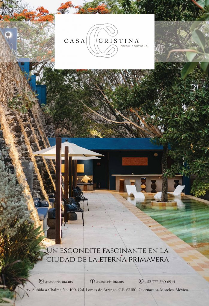 Con un estilo mexicano minimalísta contemporáneo y a la vez elegante, los propietarios de Casa Cristina se esmeraron para cuidar todos los detalles para hacer de este lugar un remanzo de paz y de descanso, en donde cada habitación adopta una temática y color diferente qué describe una parte de la región de Morelos, sin faltar todas las amenidades que un hotel boutique de lujo debe tener.