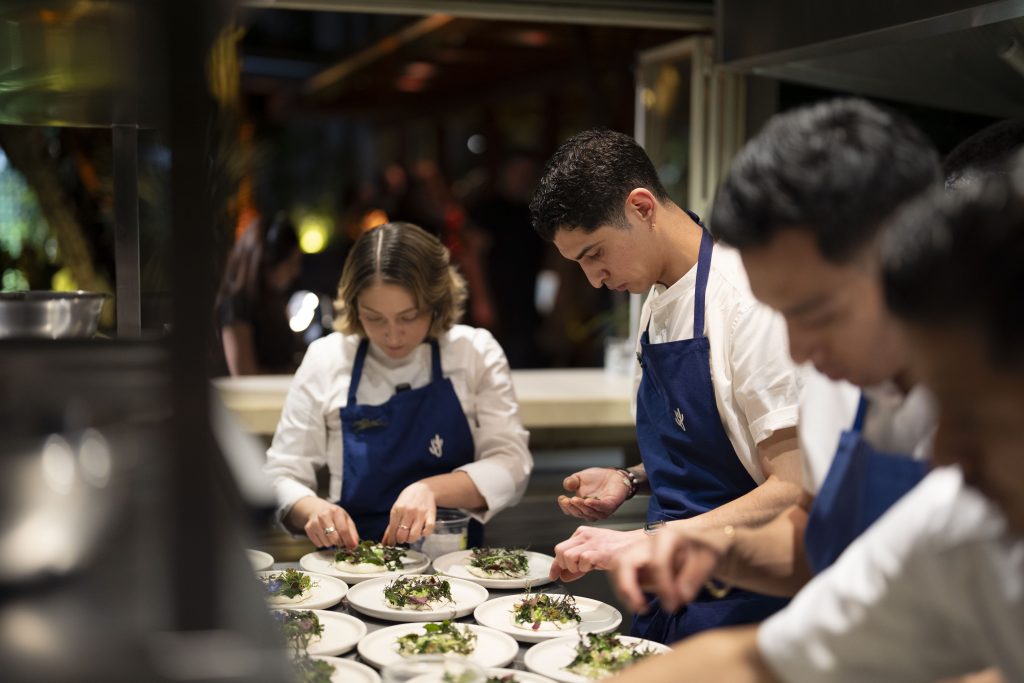 La experiencia gastronómica, a cargo de los reconocidos chefs Alejandra Navarro y Ernesto Hernández, estuvo inspirada en la excelencia y artesanía de la maison. Cada platillo, elaborado con ingredientes locales, fue diseñado para complementar la paleta de colores y las texturas de la colección, transformando la cena en una verdadera expresión de la cultura local con un toque moderno.